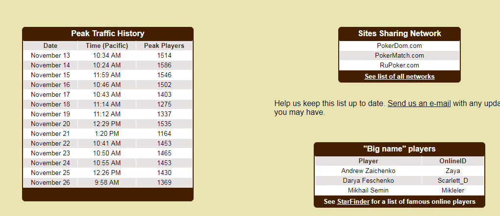Поскольку ПокерДом является еще сравнительно молодым оператором, его статистические показатели значительно уступают зарубежным румам.